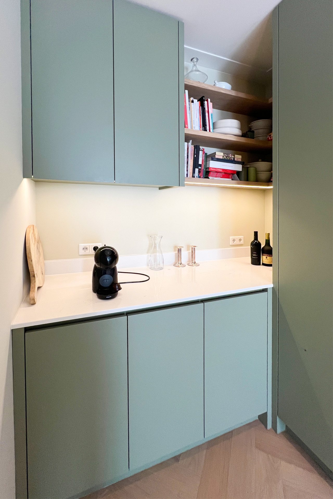 Deze twee-onder-een-kapwoning werd vergroot door een deel van de oprit bij het huis te betrekken. De bewoners vroegen mij om hulp bij het ontwerpen van de indeling, de inrichting en een nieuwe keuken.